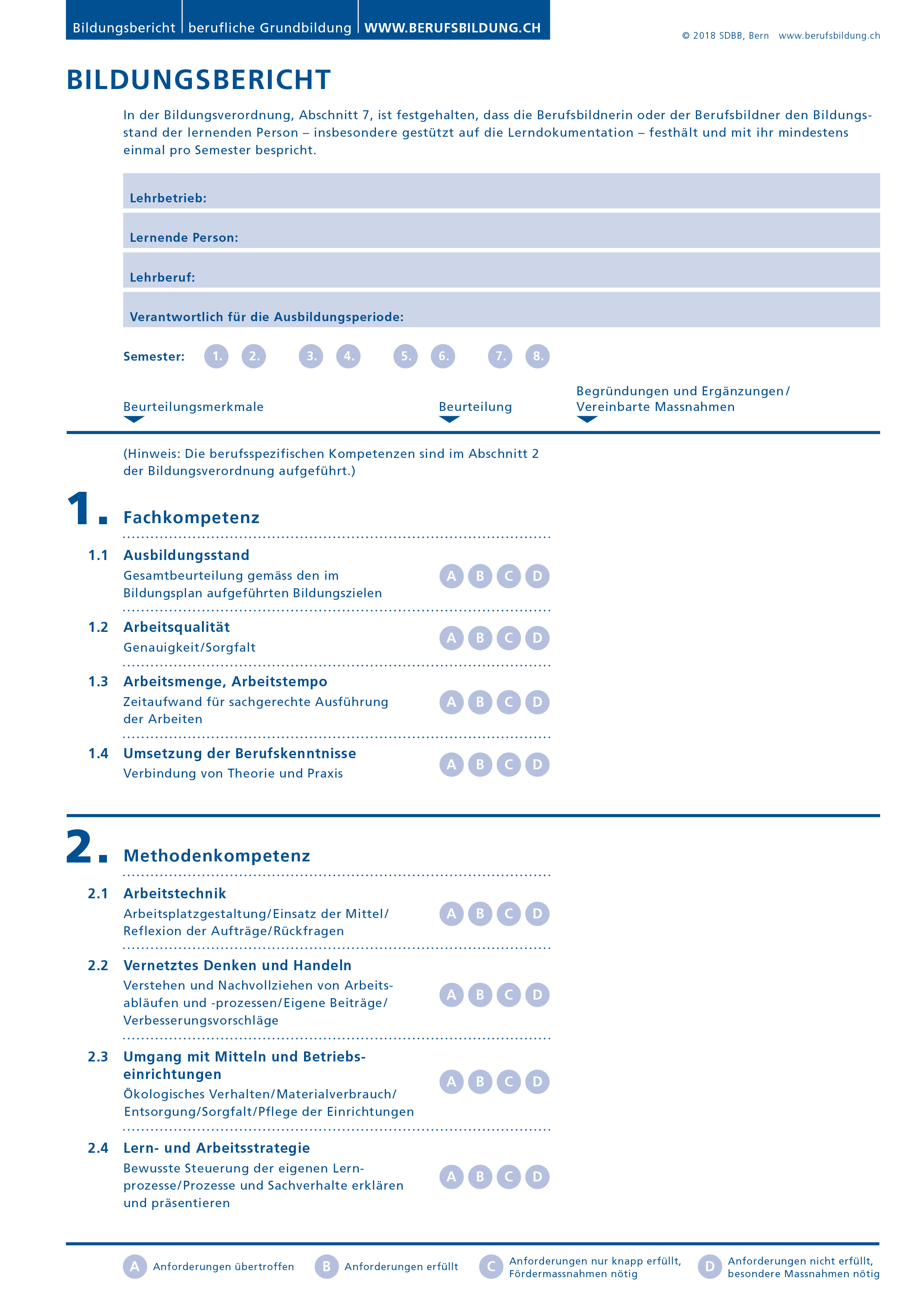 Mit diesem Formular können Berufsbildner/innen mit der lernenden Person das halbjährliche Qualifikationsgespräch mit minimalem Zeitaufwand optimal vorbereiten, strukturieren, durchführen und protokollieren.