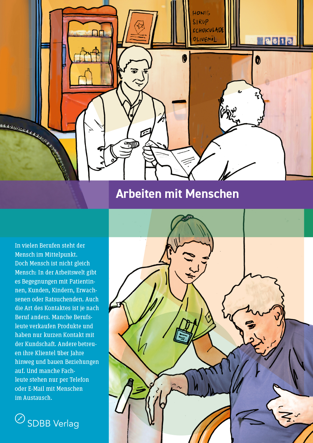In vielen Berufen steht der Mensch im Mittelpunkt. Doch Mensch ist nicht gleich Mensch: In der Arbeitswelt gibt es Begegnungen mit Patientinnen, Kunden, Kindern, Erwachsenen oder Ratsuchenden. Auch die Art des Kontaktes ist je nach Beruf anders. Manche Berufsleute verkaufen Produkte und haben nur kurzen Kontakt mit der Kundschaft. Andere betreuen ihre Klientel über Jahre hinweg und bauen Beziehungen auf. Und manche Fachleute stehen nur per Telefon oder E-Mail mit Menschen im Austausch.