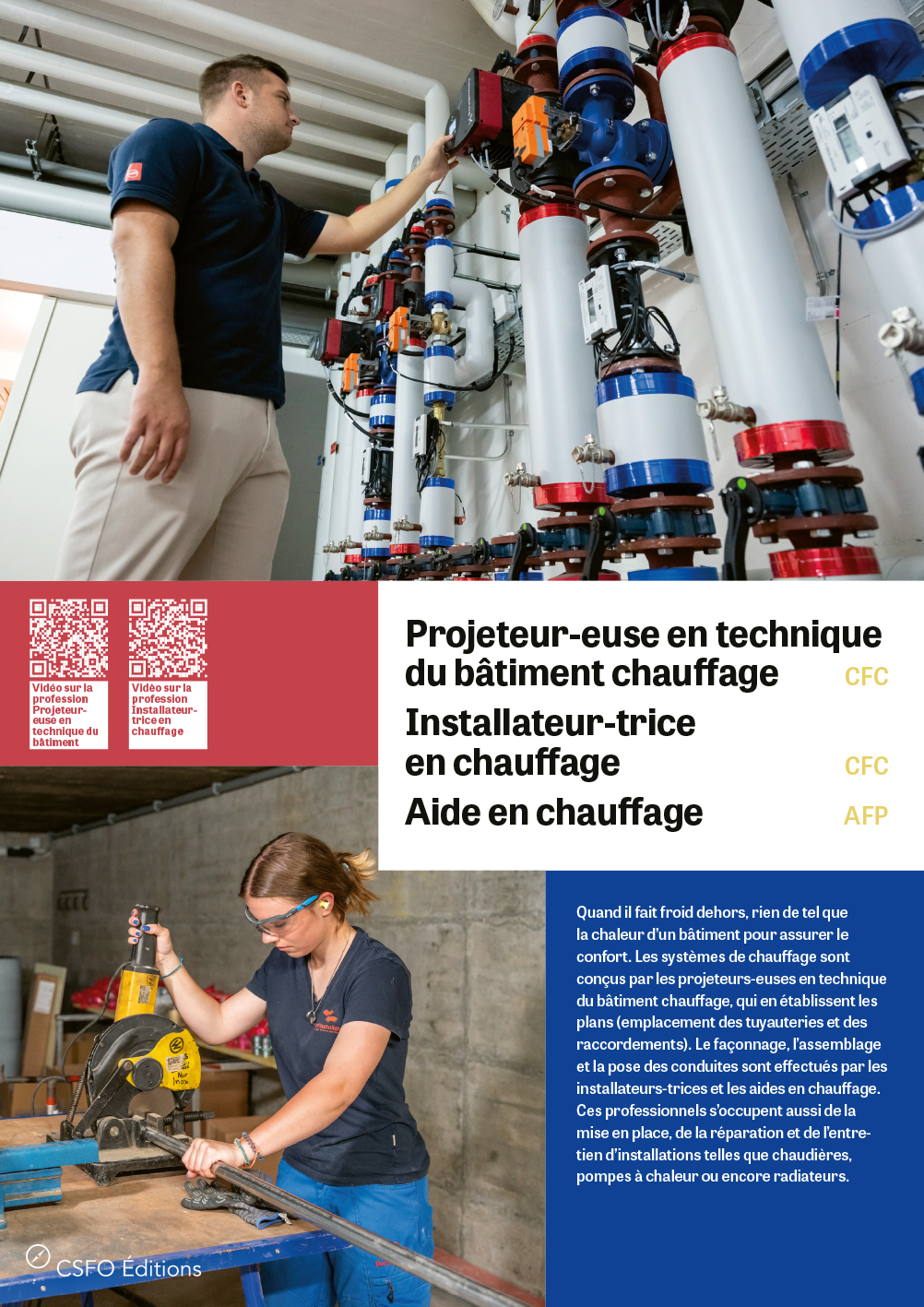 Projeteur/euse en technique du bâtiment chauffage, Installateur/trice en chauffage, Aide en chauffage