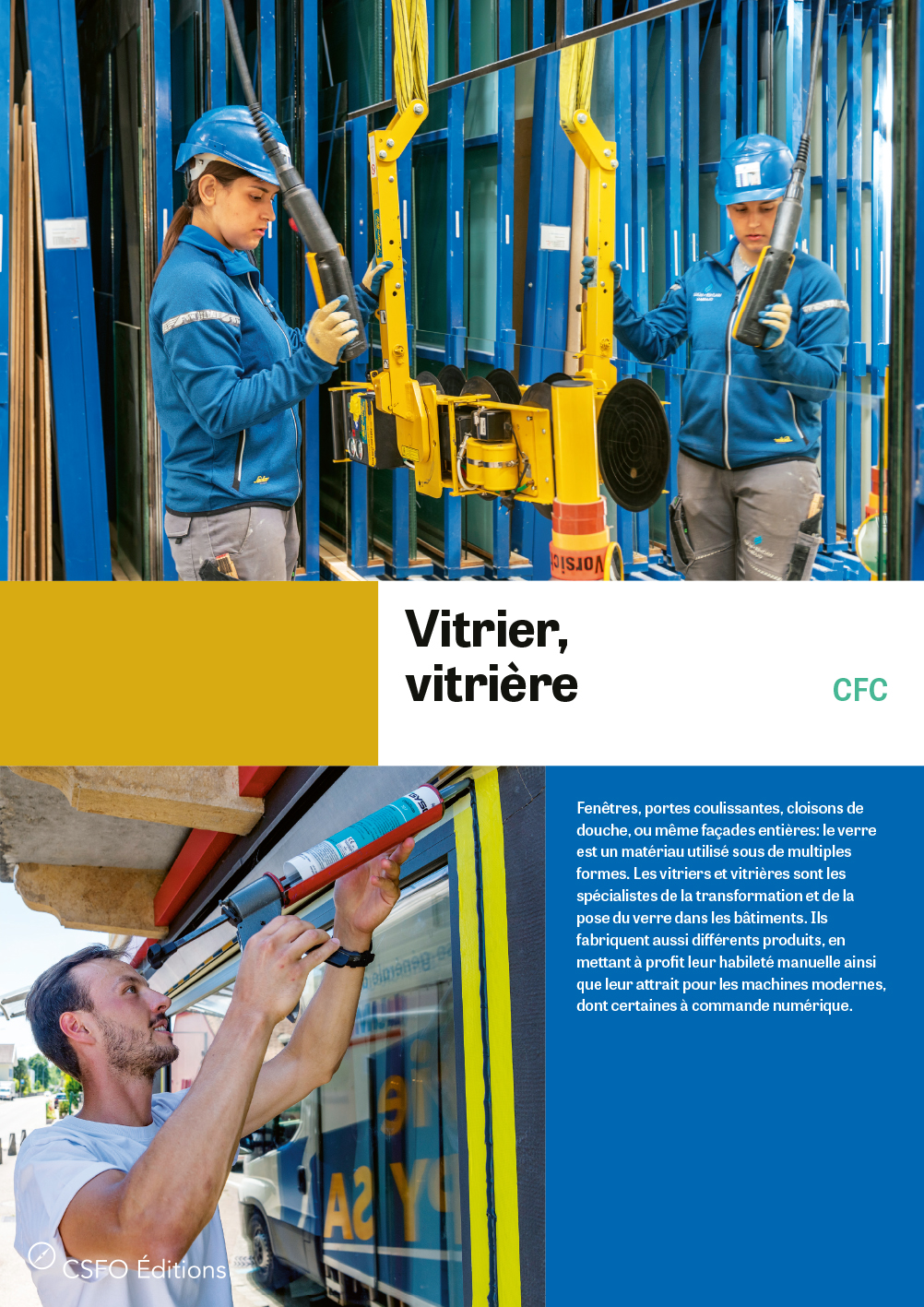 Fenêtres, portes coulissantes, cloisons de douche, ou même façades entières: le verre est un matériau utilisé sous de multiples formes. Les vitriers et vitrières sont les spécialistes de la transformation et de la pose du verre dans les bâtiments. Ils fabriquent aussi différents produits, en mettant à profit leur habileté manuelle ainsi que leur attrait pour les machines modernes, dont certaines à commande numérique.