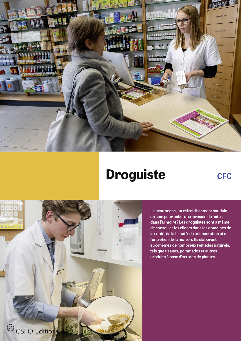Cosmétiques, médicaments en vente libre, produits chimiques, tisanes ou encore teintures L'assortiment de produits proposés par les droguistes est large. Dans les drogueries, ces professionnels s'occupent du conseil et de la vente de produits de toutes sortes. Ils répondent aux demandes des clients, font des préparations maison, gèrent le stock de marchandises et mettent en avant certains produits lors de promotions notamment.
