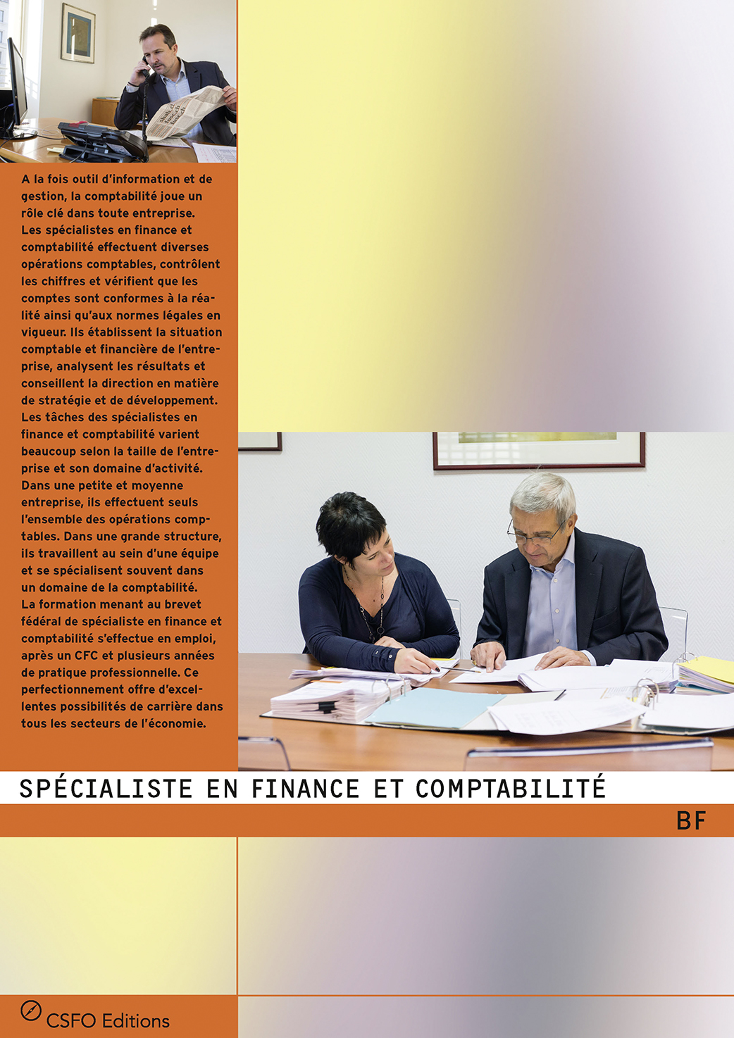 Accessible après un CFC et quelques années de pratique professionnelle, le brevet fédéral de spécialiste en finance et comptabilité offre de nombreuses perspectives professionnelles. Les spécialistes en finance et comptabilité peuvent exercer dans tous les secteurs de l'économie. Ils effectuent diverses opérations comptables, établissent la situation financière de l'entreprise, analysent les résultats et conseillent la direction en matière de développement.