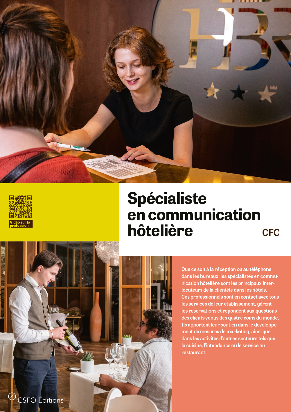 Que ce soit à la réception ou au téléphone dans les bureaux, les spécialistes en communication hôtelière sont les principaux interlocuteurs de la clientèle dans les hôtels. Ces professionnels sont en contact avec tous les services de leur établissement, gèrent les réservations et répondent aux questions des clients venus des quatre coins du monde. Ils apportent leur soutien dans le développement de mesures de marketing, ainsi que dans les activités d’autres secteurs tels que la cuisine, l’intendance et le service au restaurant.