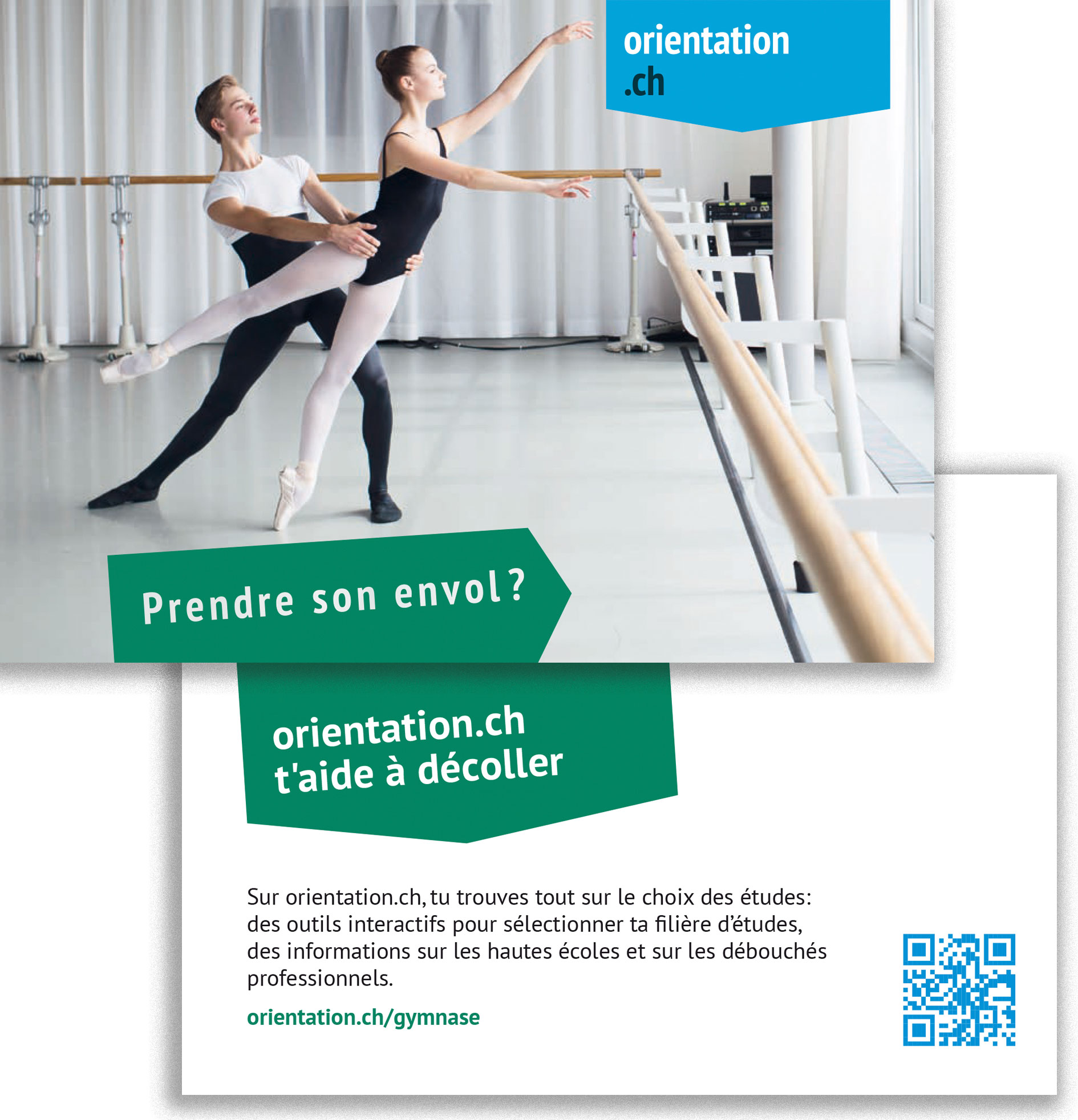 Ce flyer explique comment trouver, par le biais du portail orientation.ch, des outils interactifs pour sélectionner une filière d’études, mais aussi des informations sur les hautes écoles et les débouchés professionnels.