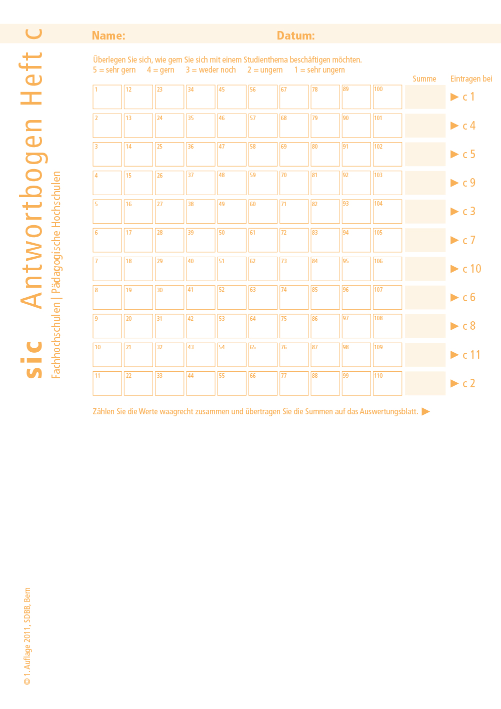 sic Fachhochschulen | Pädagogische Hochschulen Antwortblätter c (Bund à 10 Ex.)
