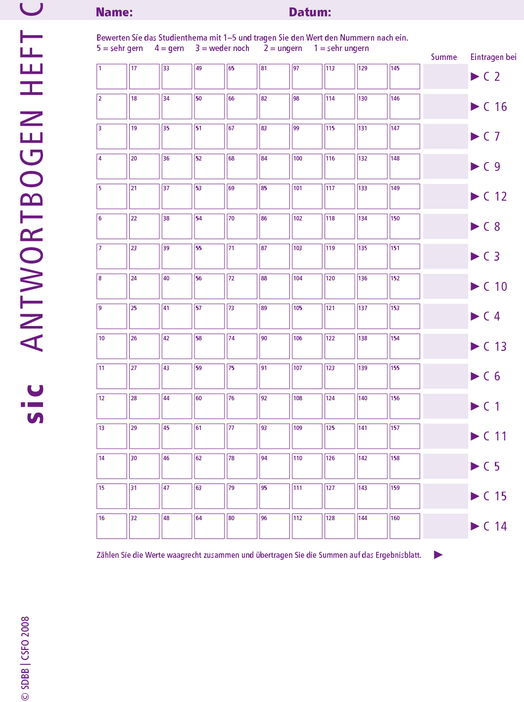 sic Antwortblätter C (Bund à 10 Ex.)
