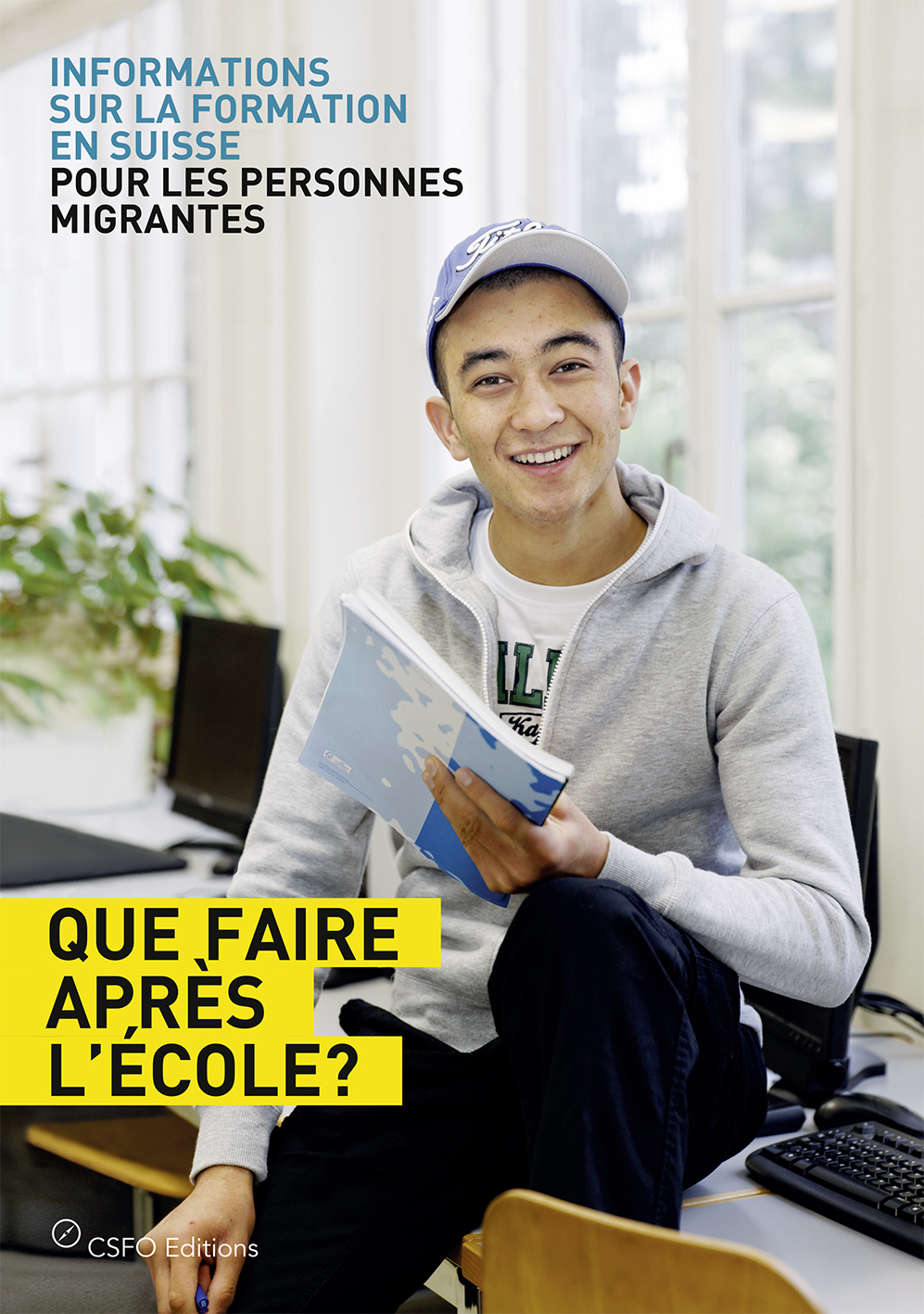 Le cahier offre de manière attractive des informations sur les voies de formation et le système de formation en Suisse aux personnes migrantes. Il les aide à situer leur propre bagage de formation et à trouver les moyens de le développer. Le contenu s’articule autour des passages d’une étape de formation à l’autre, et en particulier autour de la transition vers le secondaire II. La préparation à cette étape est abondamment décrite de même que le fonctionnement de la formation professionnelle, qui est la formation de base la plus courante en Suisse et qui reste méconnue ou négligée dans beaucoup d’autres pays.