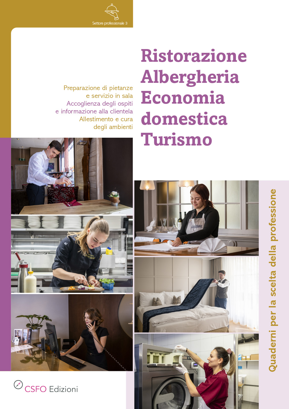 Riccamente illustrato, questo quaderno propone una visione d’insieme dei principali ambiti di attività offerti dai settori professionali della ristorazione, dell’albergheria, dell’economia domestica e del turismo, informando allo stesso tempo sulle attitudini richieste e sull’ambiente di lavoro. La parte principale della pubblicazione è poi costituita dall’ampio catalogo delle professioni, ordinate per livello di formazione e alfabeticamente. Una presentazione dettagliata del sistema formativo svizzero completa il fascicolo.
