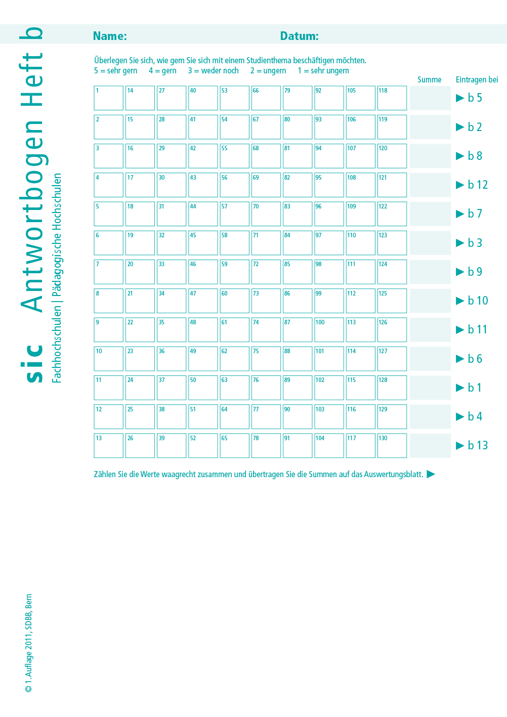 sic Fachhochschulen | Pädagogische Hochschulen Antwortblätter b (Bund à 10 Ex.)